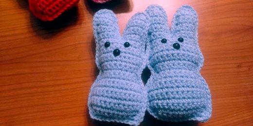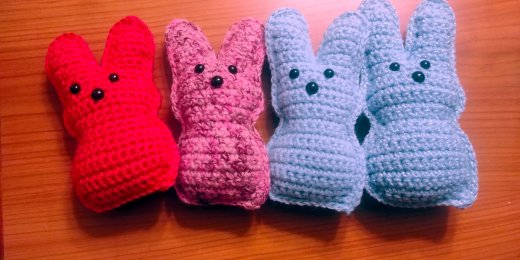 Peeps are made with acrylic yarn and are available in many colors.