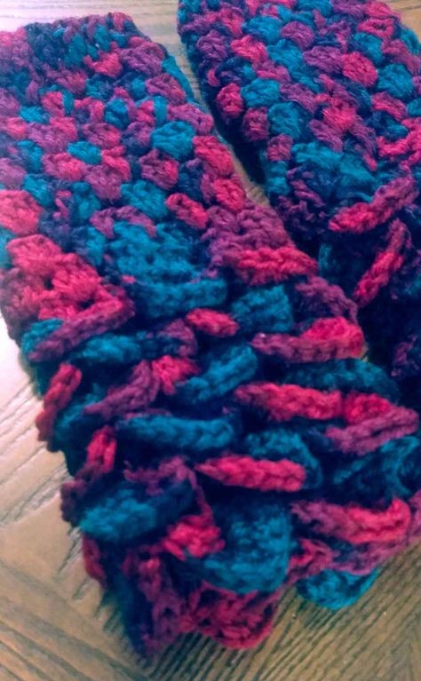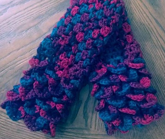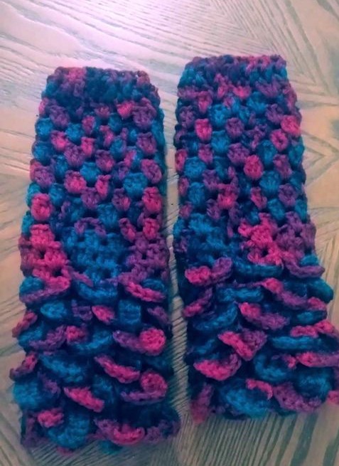 Hand crochet finger less gloves with a special stitch to made them look like dragon scales.