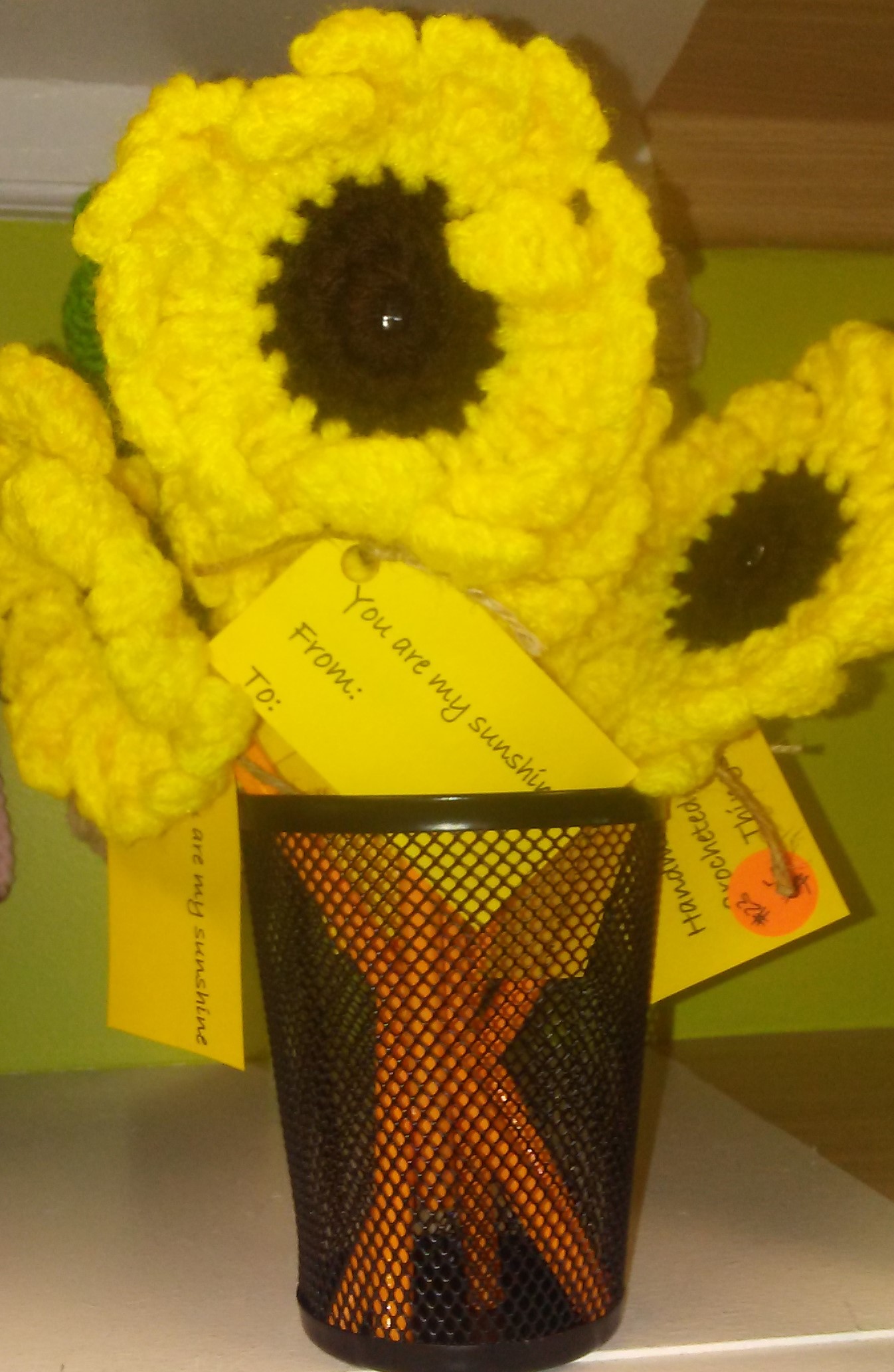 Bright and happy sunflower attached to a pencil. Comes with yellow gift tag that says "You are my sunshine. Perfect to brighten a loved one spirit.