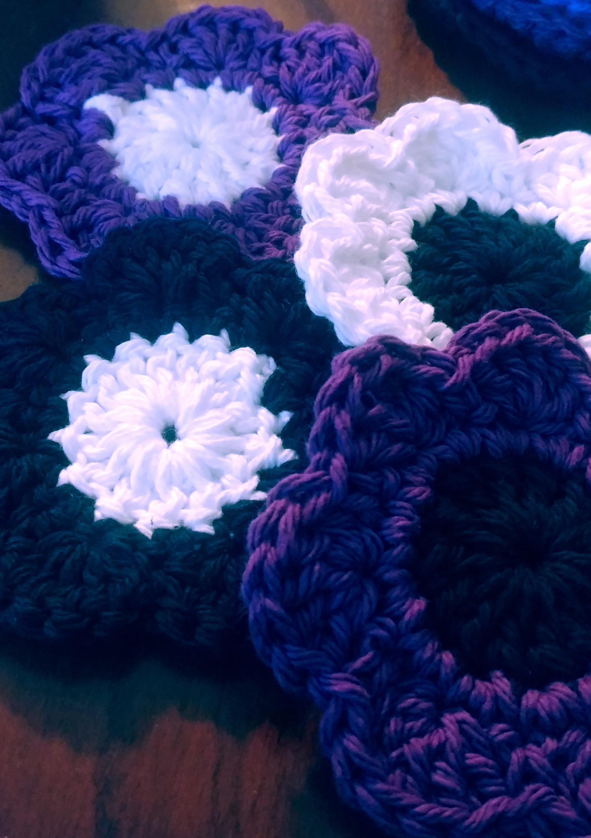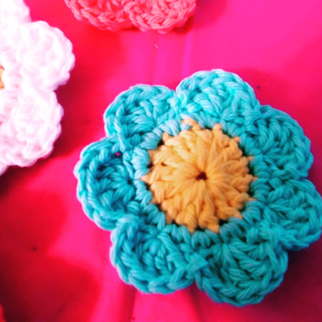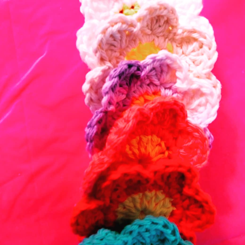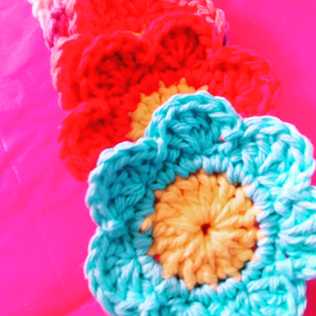 Crochet facial scrubby made of 100% cotton. Gently exfoliate your skin without being harsh. Made to look like flowers, can make them in any colors.