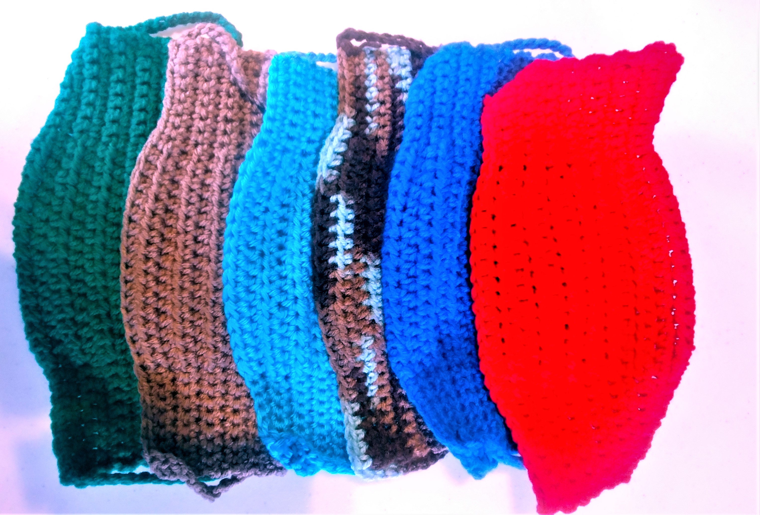 Crochet cover is made of washable acrylic yarn available in may colors.