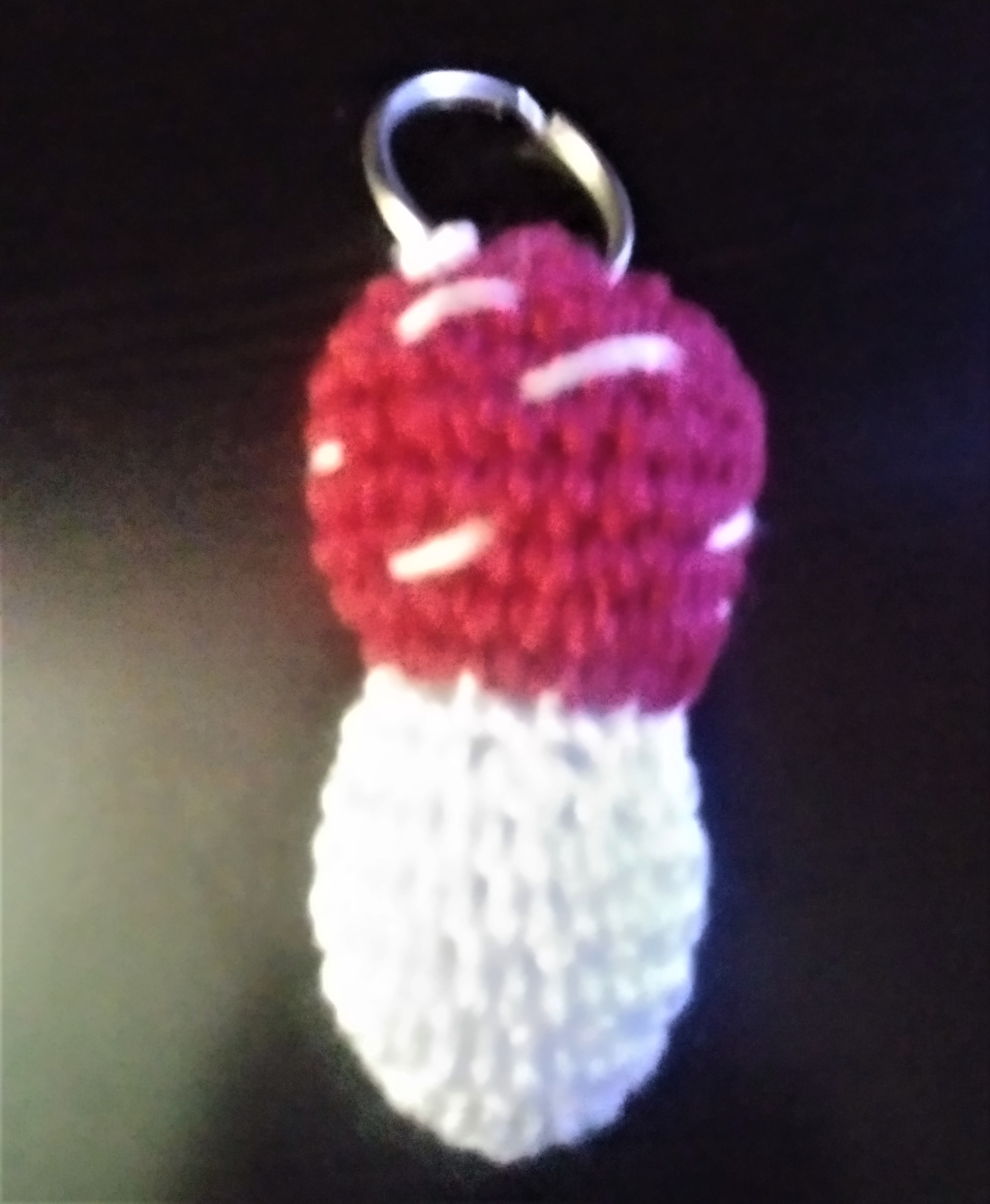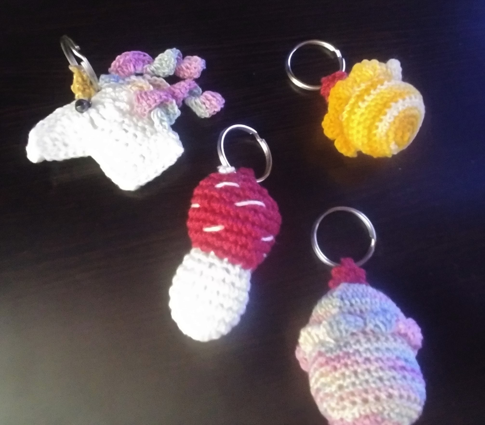 Small handmade key chains, crocheted with fine thread. Stuffed with poly fill.