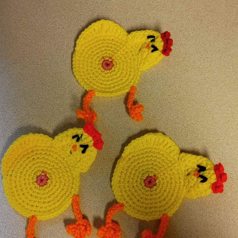 Back by popular demand. Crocheted chicken butt coasters. Made with acrylic yarn. Roughly 4" in diameter.